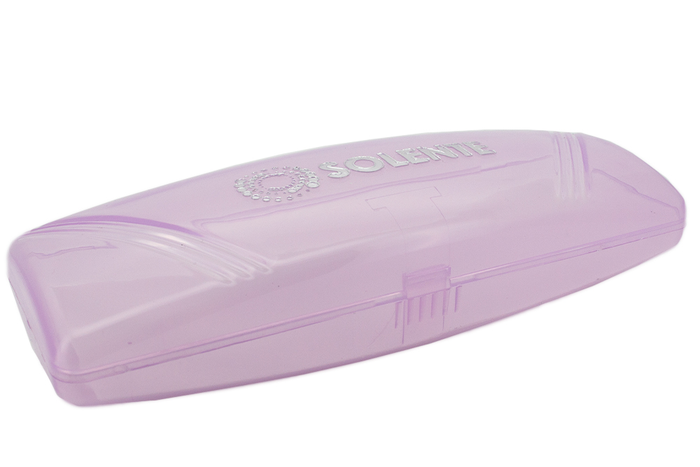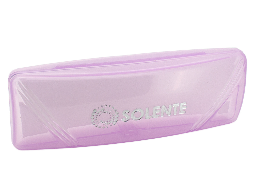 Яскравий та сучасний футляр SOLENTE у ніжному фіолетовому кольорі виготовлений із міцного пластику з глянцевим покриттям. Прозорий корпус додає легкості та стилю, а щільна конструкція надійно захищає окуляри від подряпин і ударів. Компактний, легкий і зручний — ідеальний вибір для щоденного використання або як стильний аксесуар у сумочці.