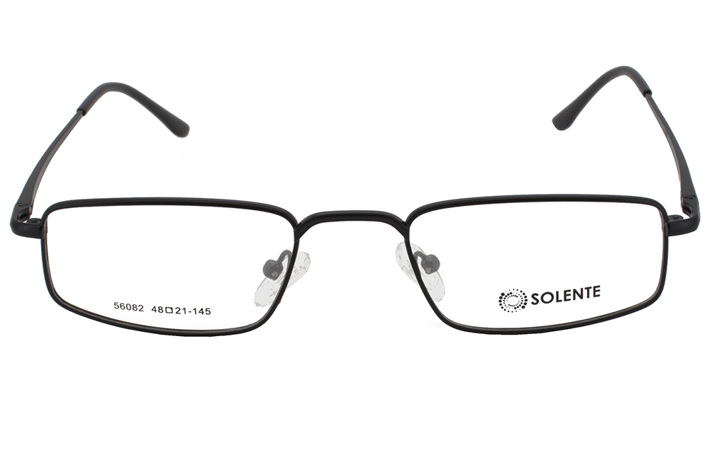 Прямокутна металева оправа для чоловіків від українського бренду Solente має зручний завушник, що забезпечує надійну фіксацію та комфортне використання, а рухливі носоупори дають додаткову підтримку та гарну посадку на переніссі.