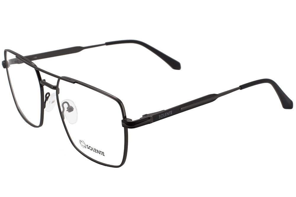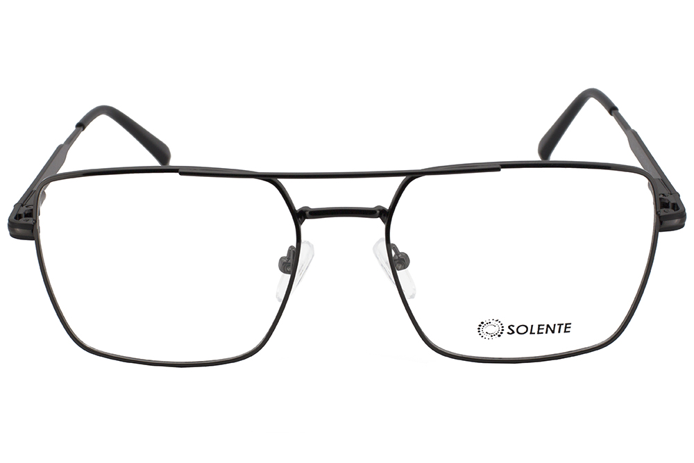 Квадратна металева оправа для чоловіків та жінок від українського бренду Solente має зручний завушник, що забезпечує надійну фіксацію та комфортне використання, а рухливі носоупори дають додаткову підтримку та гарну посадку на переніссі.