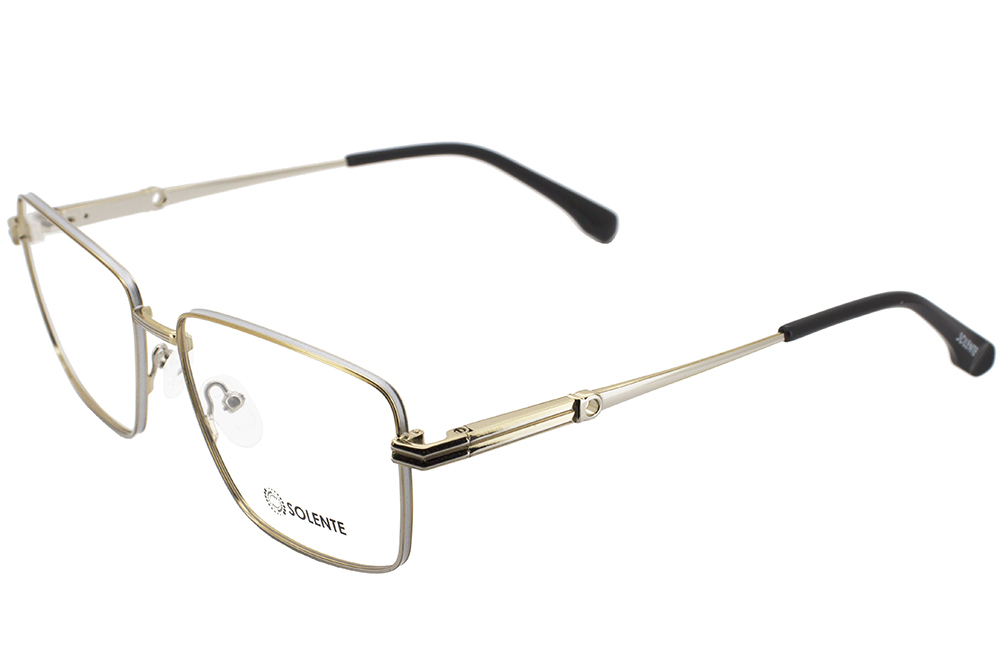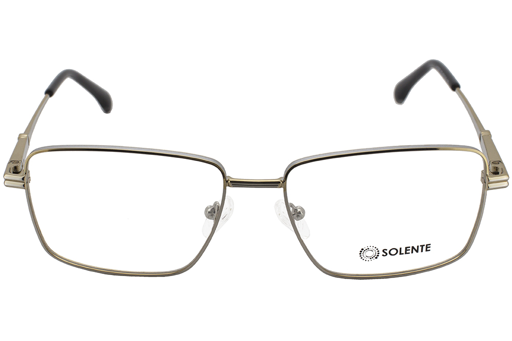 Квадратная металлическая оправа для мужчин от украинского бренда Solente имеет удобный заушник, обеспечивающий надежную фиксацию и комфортное использование, а подвижные носоупоры дают дополнительную поддержку и хорошую посадку на переносице.